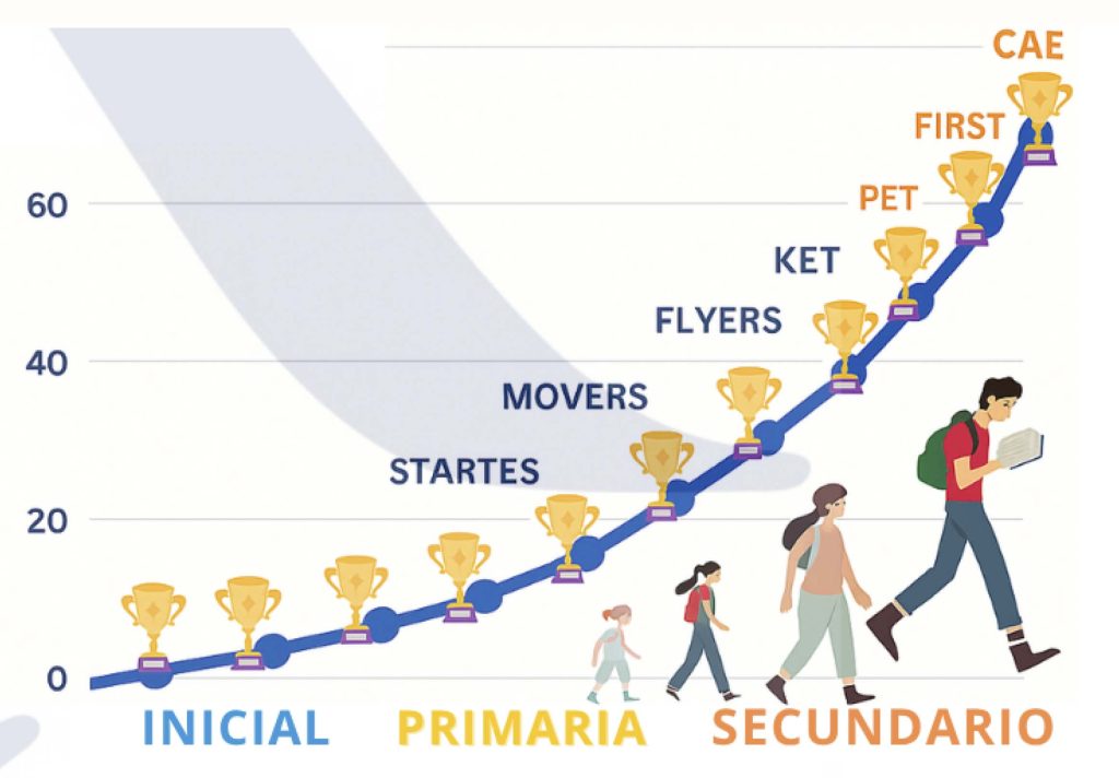 Orientamos a los alumnos hacia la preparación de exámenes de Cambridge desde una temprana edad, jerarquizando el progreso paulatino y fomentando un ambiente de clase motivador y seguro que los fortalecerá, dirigiéndolos hacia un logro exitoso en las categorías venideras. Pronto, los alumnos comienzan a ganar confianza y a sentirse preparados para los niveles siguientes.